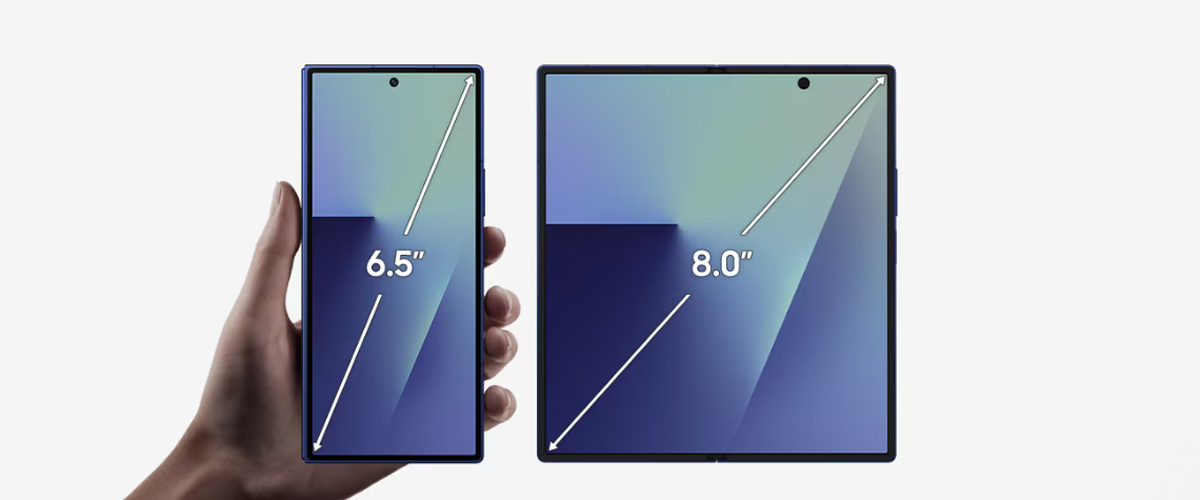 - พื้นที่หน้าจอที่มากขึ้น: หน้าจอหลักถูกขยายขึ้นเป็น 8 นิ้ว พร้อมอัตราส่วนภาพที่กว้างขึ้น ทำให้การเปิดแอปพร้อมกัน 3 หน้าจอ (Multi-window) ทำได้สะดวกเหมือนใช้งานแท็บเล็ตจริง
